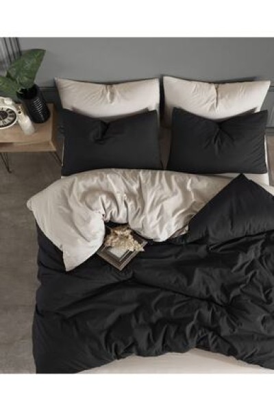 conzaliza conzalizaLastikli Çarşaflı Çift Kişilik Nevresim Takımı | Siyah Bej |