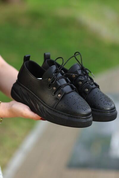 Down Siyah Cilt Bağcıklı Spor Ayakkabı
