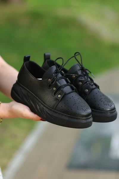Erbilden Down Siyah Cilt Bağcıklı Spor Ayakkabı