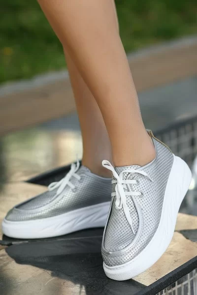 Erbilden Freya Gri Cilt Bağcıklı Spor Ayakkabı