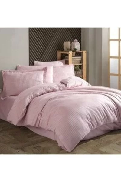 Hobby HobbyÇizgili Pudra - Çift Kişilik Jakarlı Saten Nevresim Takımı