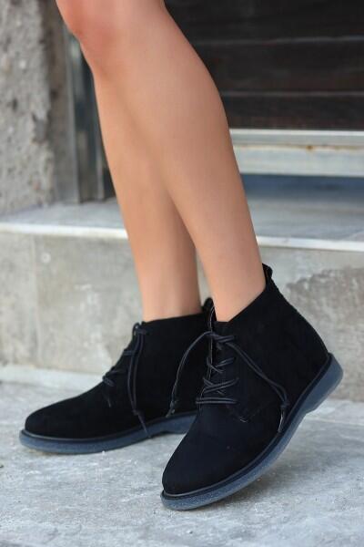 Kean Siyah Süet Gri Tabanlı Bağcıklı Bot
