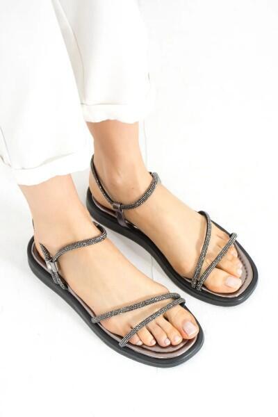 Erbilden Nadda Platin Cilt Boncuk İşlemeli Sandalet