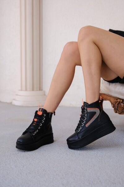 Pone Siyah Cilt Turuncu Detaylı Bağcıklı Bot