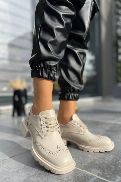 Soer Bej Cilt Bağcıklı Oxford Ayakkabı