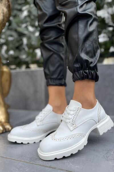 Erbilden Soer Beyaz Cilt Bağcıklı Oxford Ayakkabı