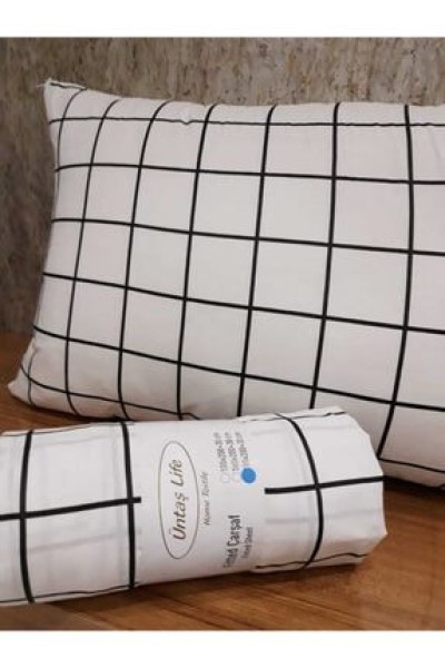 üntaşTek Kişilik Lastikli Çarşaf +1 Adet Yastık Kılıfı Mini Karo Siyah Beyaz Enikaro1