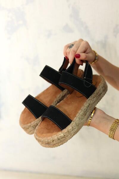 Erbilden Wery Siyah Deri Cırt Cırtlı Sandalet
