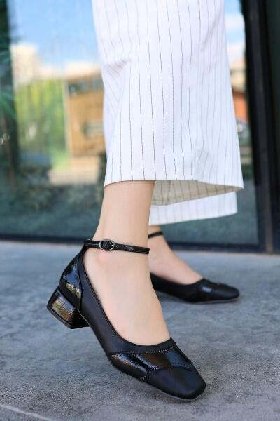 Erbilden Yanne Siyah Cilt Topuklu Ayakkabı